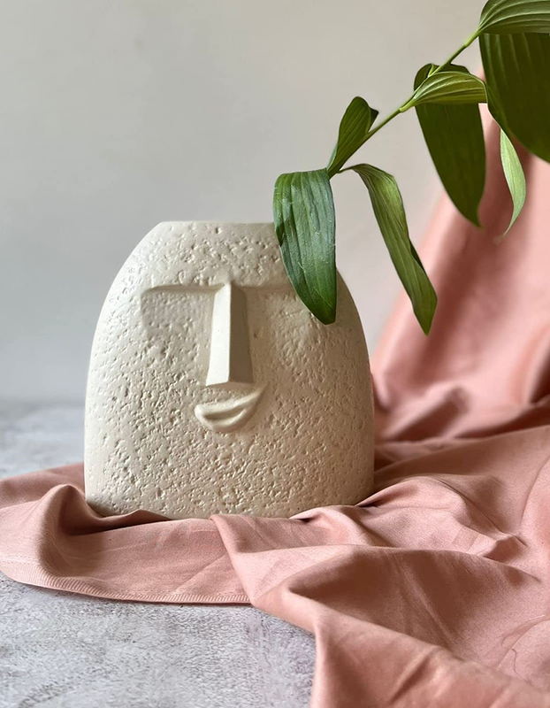 Craftribal Ceramic Textured Smiling Face Vase | Ceramic Flower Vase | Matte (Textured) Finish, 9 Inches (White)